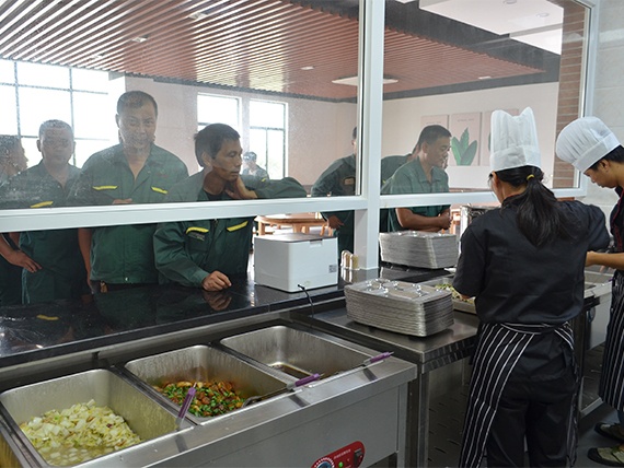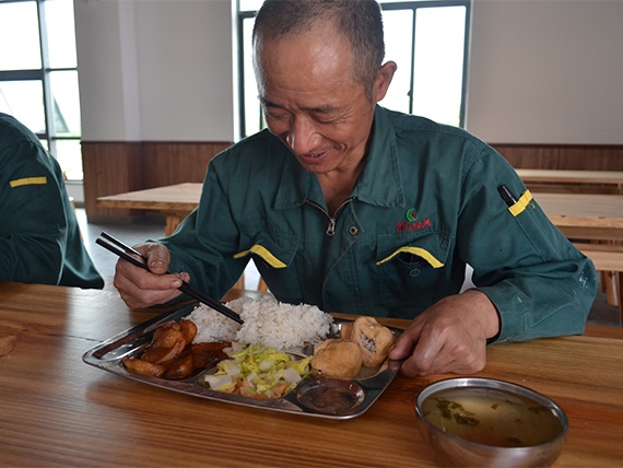 面對鏡頭,師傅告訴我,現(xiàn)在在新食堂吃飯真的很滿足,每天有這么多的好菜式可以自主挑選,而且菜也變好吃了很多。新食堂的裝修環(huán)境也很美,一早上辛苦工作后,在這里吃飯可以好好放松一下。面對鏡頭,師傅們一個個都開心得贊不絕口。