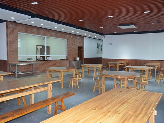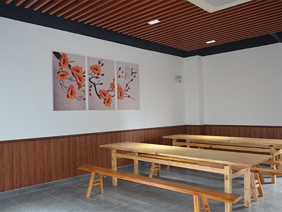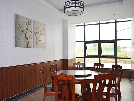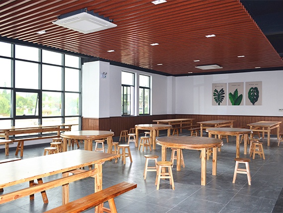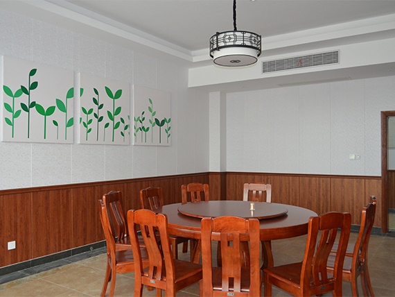 木制的桌椅,舒適的環(huán)境,呼應(yīng)了浙江綠洲環(huán)保能源有限公司“環(huán)?!钡闹黝},處處體現(xiàn)了企業(yè)文化。整個食堂還有兩個小包間,供訪客使用。