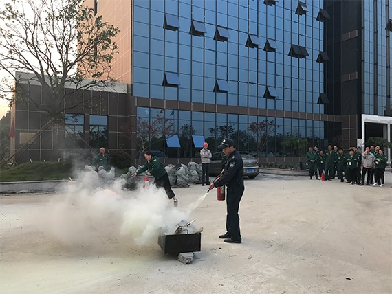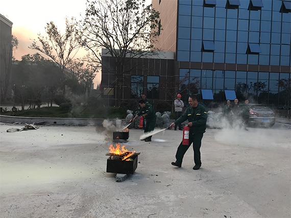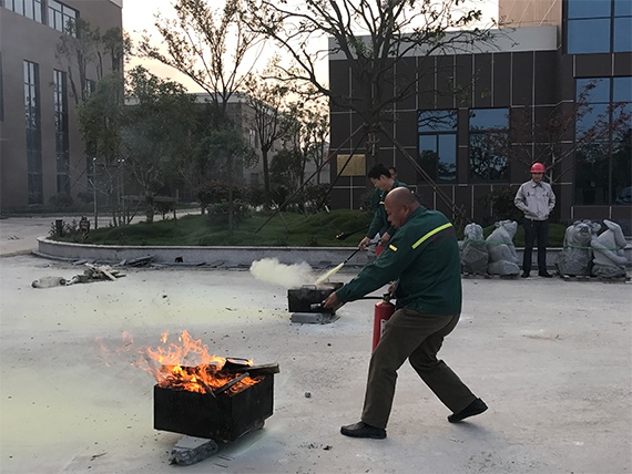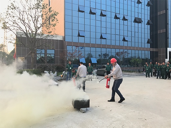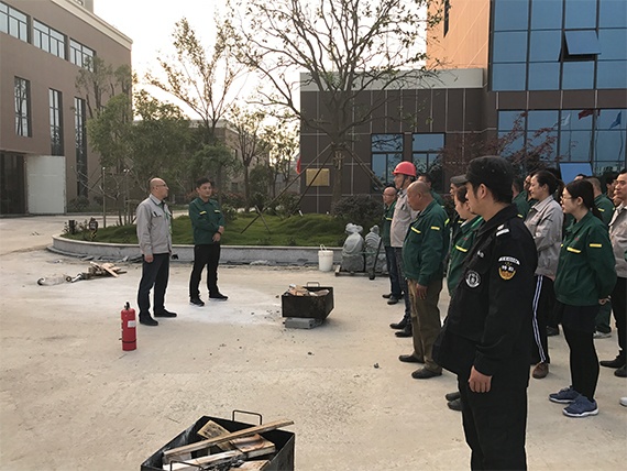 本次消防演習總指揮和副總指揮分別由公司王總和余總擔任。演習一開始,余總安排員工代表們分部門排列,王總給大家示范指導如何使用滅火器。全體員工身穿工作服,認真學習滅火器使用方法和要點。