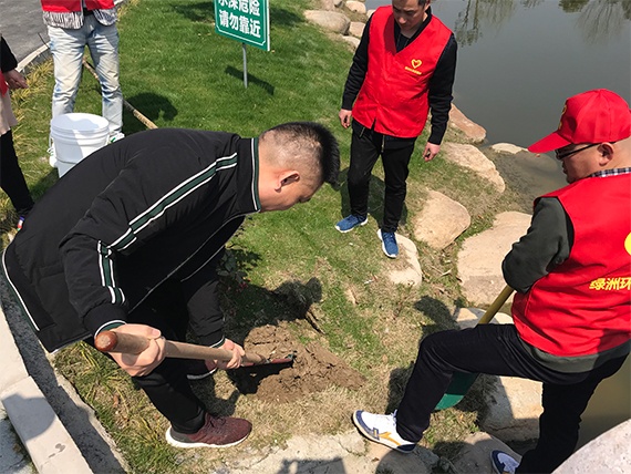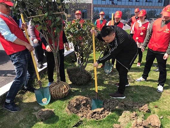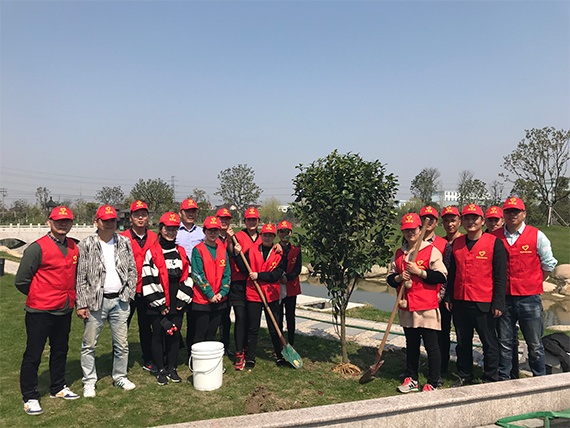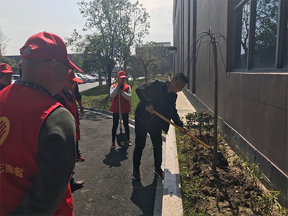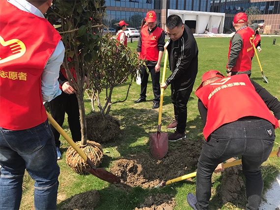 今天,綠洲環(huán)保的員工們在黨員志愿服務隊的帶領下,進行了植樹活動,員工們個個熱情高漲,帶著樹苗、植樹工具,在公司內種下紅楓、盤槐、茶花、常春藤等樹種。