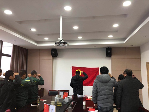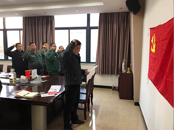 為及時準確把握黨的十九大精神,勉勵廣大黨員不忘初心,牢記使命,不斷提振精神狀態(tài),12月20日,綠洲環(huán)保黨支部書記周順康,為全體黨員干部作了題為《學(xué)習(xí)貫徹落實黨的十九大精神》的集中黨課,幫助廣大黨員深刻領(lǐng)會習(xí)近平新時代中國特色社會主義思想的歷史地位和豐富內(nèi)涵。會議上,黨支部志愿隊隊長余利鋒同志帶領(lǐng)大家面對黨旗宣誓: